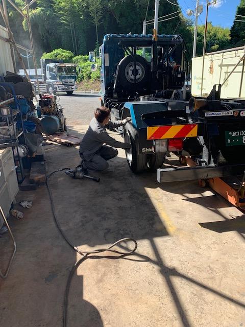 カッコよくなりました(*⁰▿⁰*)その後我が社唯一の中型車のタイヤ交換を専務がやっておりまし(*´∇`*)
